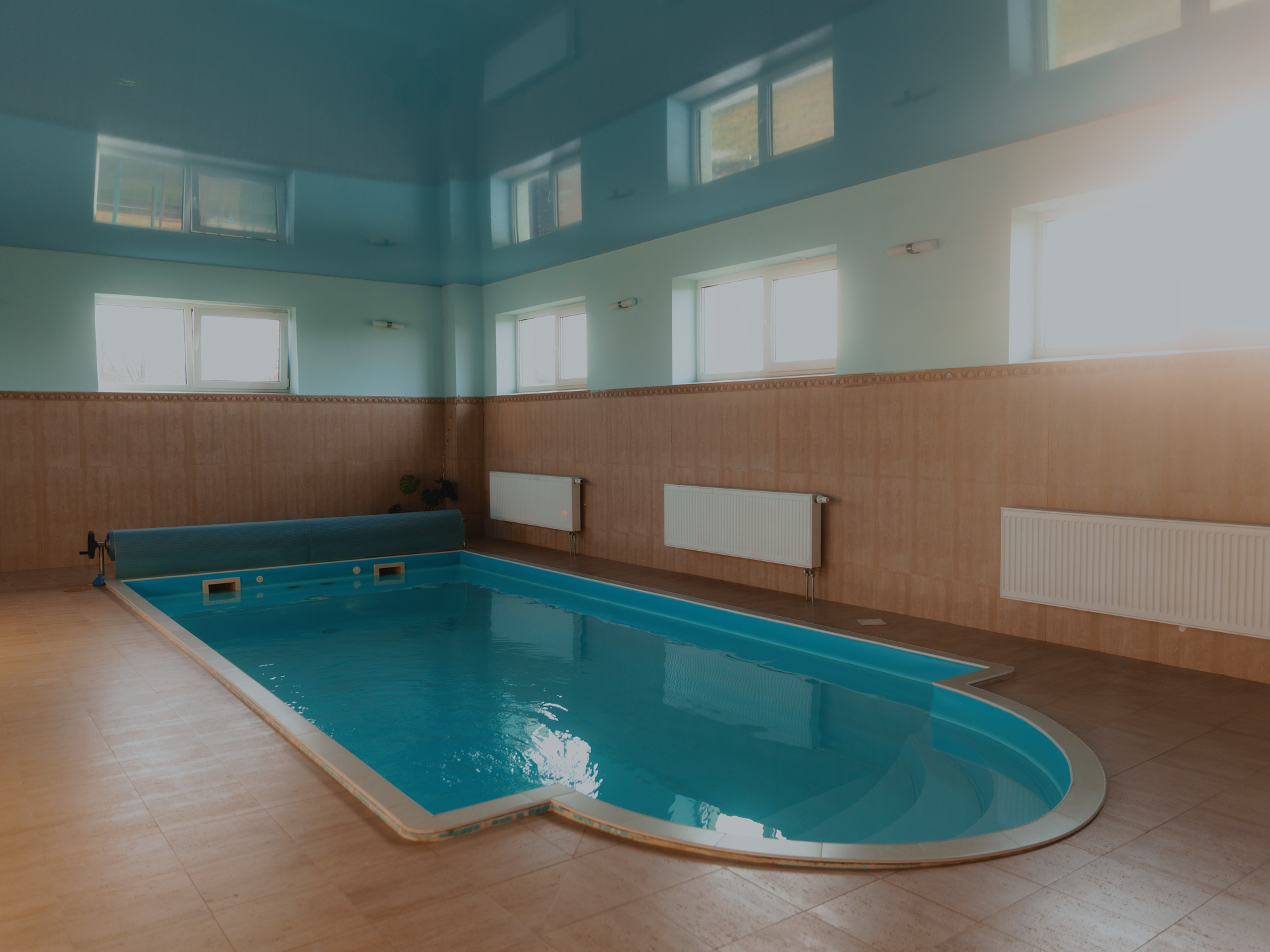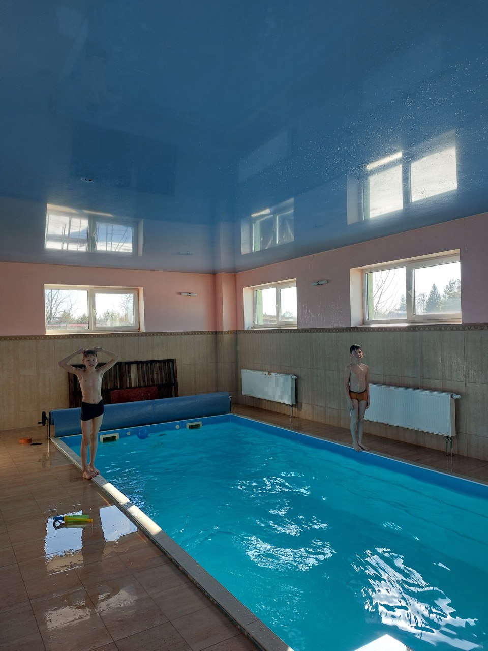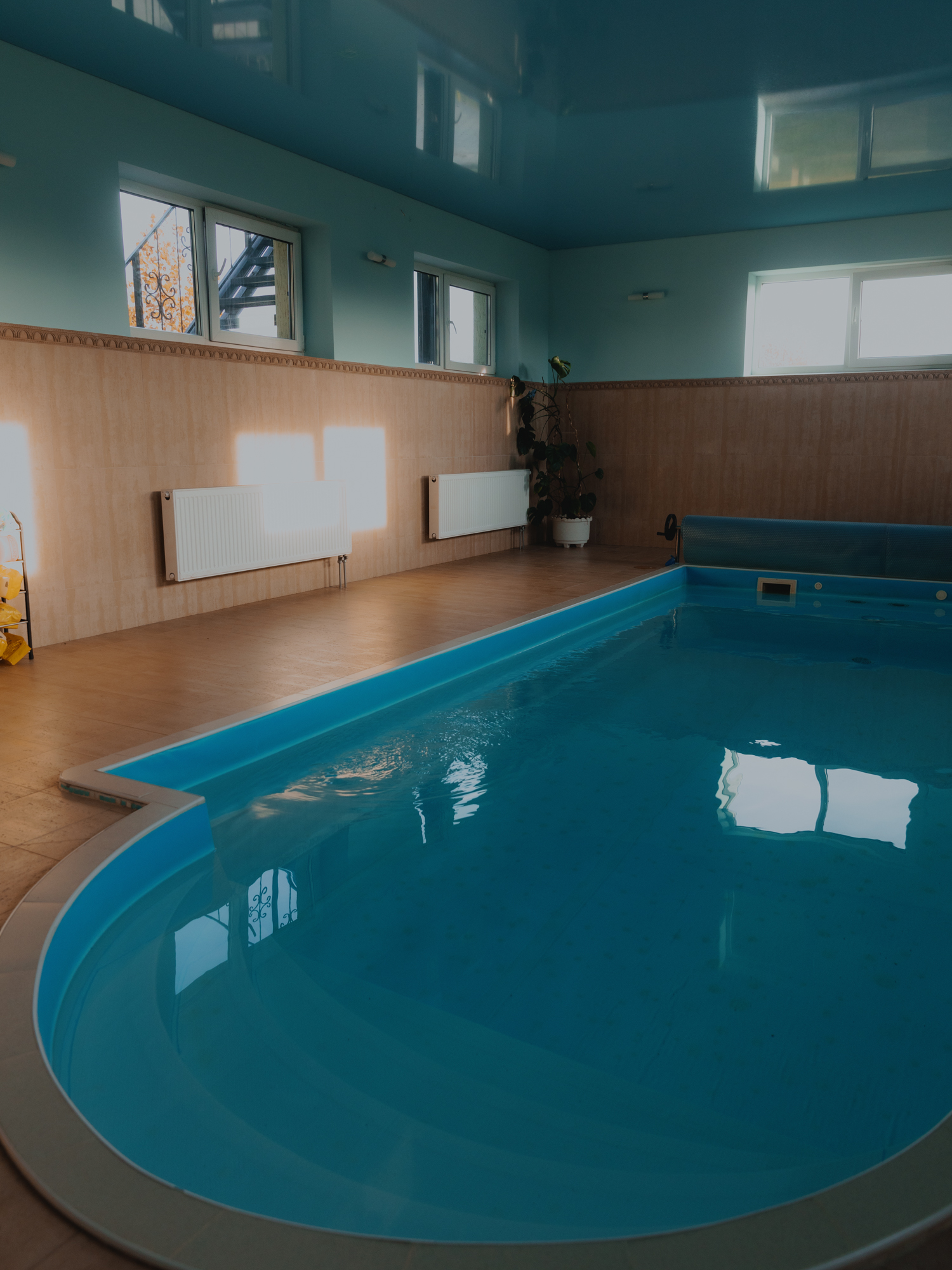 Круглый год в доме работает бассейн 3.5м * 7м глубина от 1м до 1,8 м.
