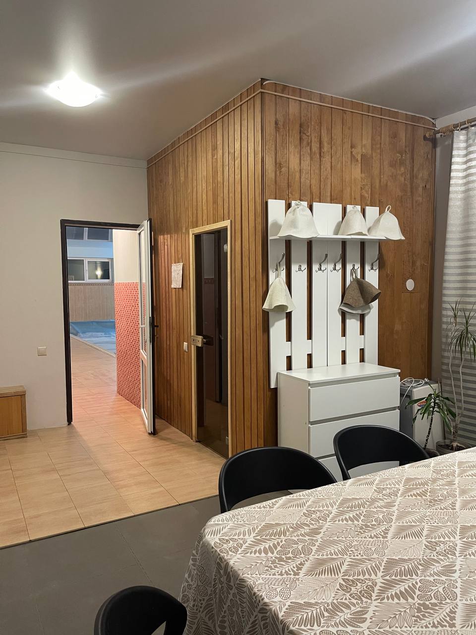 На 2 этаже уютный каминный зал. На 1 этаже вместительная парилка, душ и раздевалка. Маленькая терраса с купелью. Мангал.